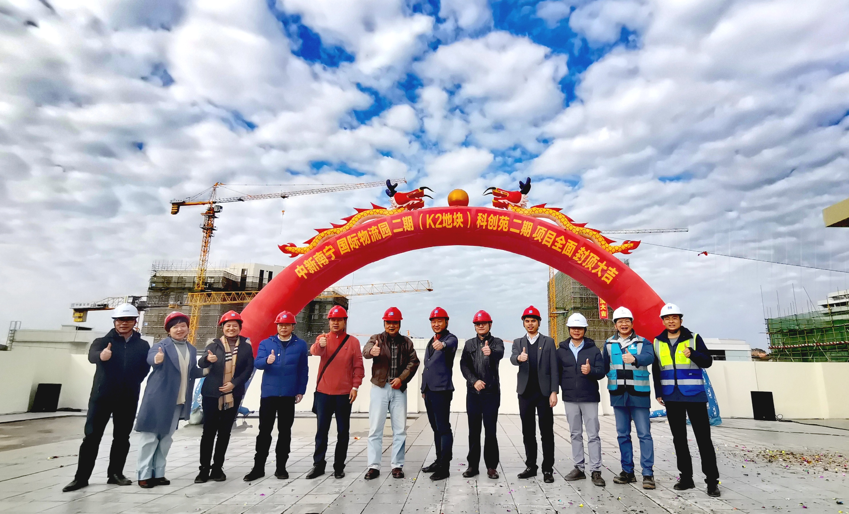 封頂大吉!中新南寧國際物流園二期K2地塊施工邁進(jìn)新階段