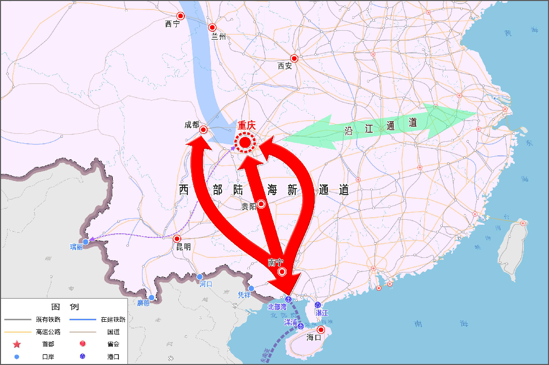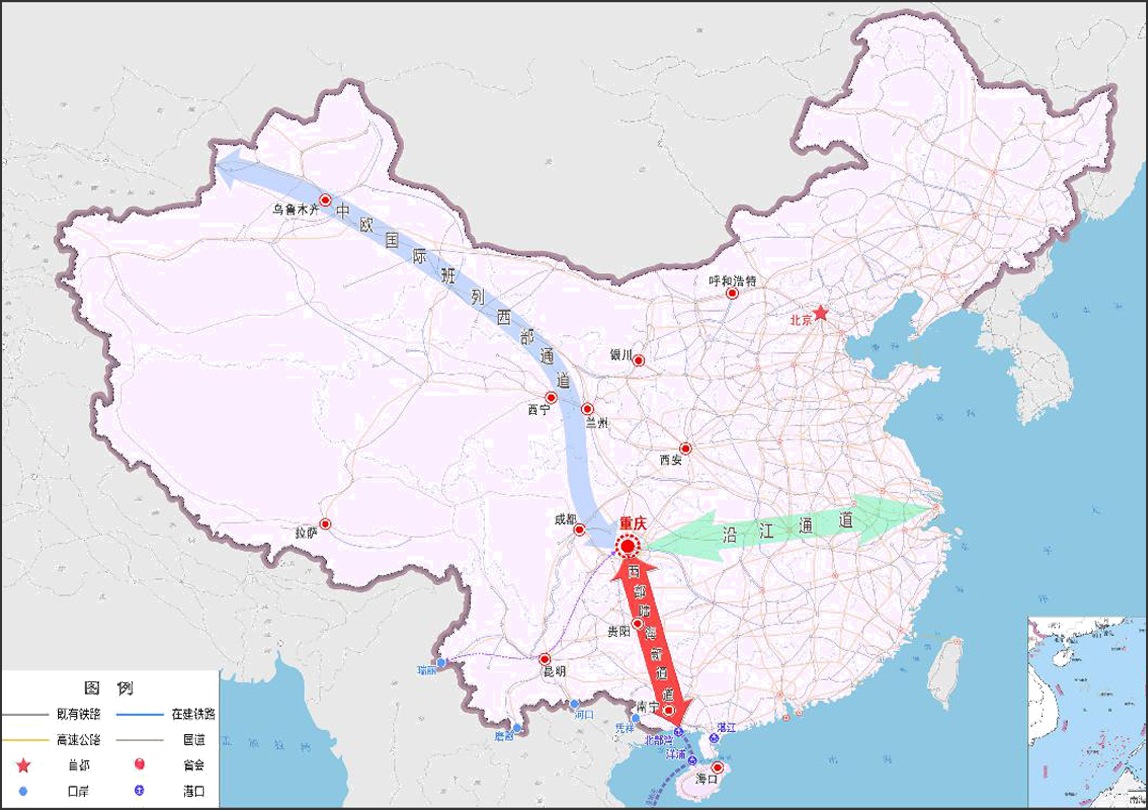 西部陸海新通道位于我們西部地區(qū)腹地,北街絲綢之路經(jīng)濟(jì)帶,南連21世紀(jì)海上絲綢之路,協(xié)同銜接長(zhǎng)江經(jīng)濟(jì)帶,在區(qū)域協(xié)調(diào)發(fā)展格局中具有重要戰(zhàn)略地位。