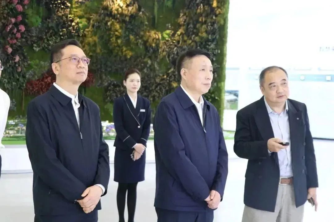 朱銳部長(zhǎng)助理在匯聚中心展館了解入駐產(chǎn)品情況