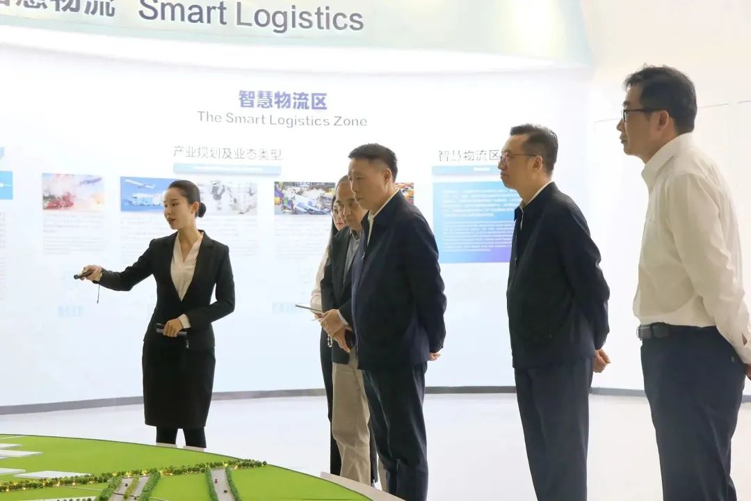 調(diào)研組一行在中新物流園展示中心聽(tīng)取項(xiàng)目介紹