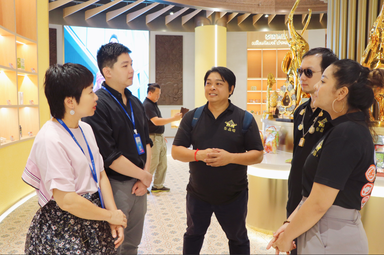 到訪的泰國企業(yè)代表團(tuán)均是在2022年9月14日匯聚中心啟動時就已將商品入駐泰國館的企業(yè),但多數(shù)企業(yè)未能親臨匯聚中心。在此次參觀匯聚中心主題展館時,泰國館館長用流利的泰語與泰國企業(yè)代表團(tuán)一行進(jìn)行溝通。他們非常欣喜地表示雖然人未到,但商品已經(jīng)通過匯聚中心走進(jìn)中國市場并受到客商們的青睞,對于將更多商品入駐匯聚中心也更有信心。