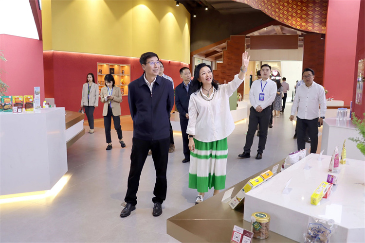 王雷書記可以說是匯聚中心的“老朋友”了。在他任職中國—東盟博覽會秘書處秘書長期間,匯聚中心自概念提出再到落地建設(shè),他是其中的見證者之一。在參觀匯聚中心多個主題展館的過程中,趙海燕董事長詳細(xì)介紹了項(xiàng)目如何通過線上數(shù)字化平臺+線下展館沉浸式商貿(mào)體驗(yàn)相結(jié)合的方式,以“物”引“流”、以“物”促“流”,幫助商家實(shí)現(xiàn)更好的發(fā)展。