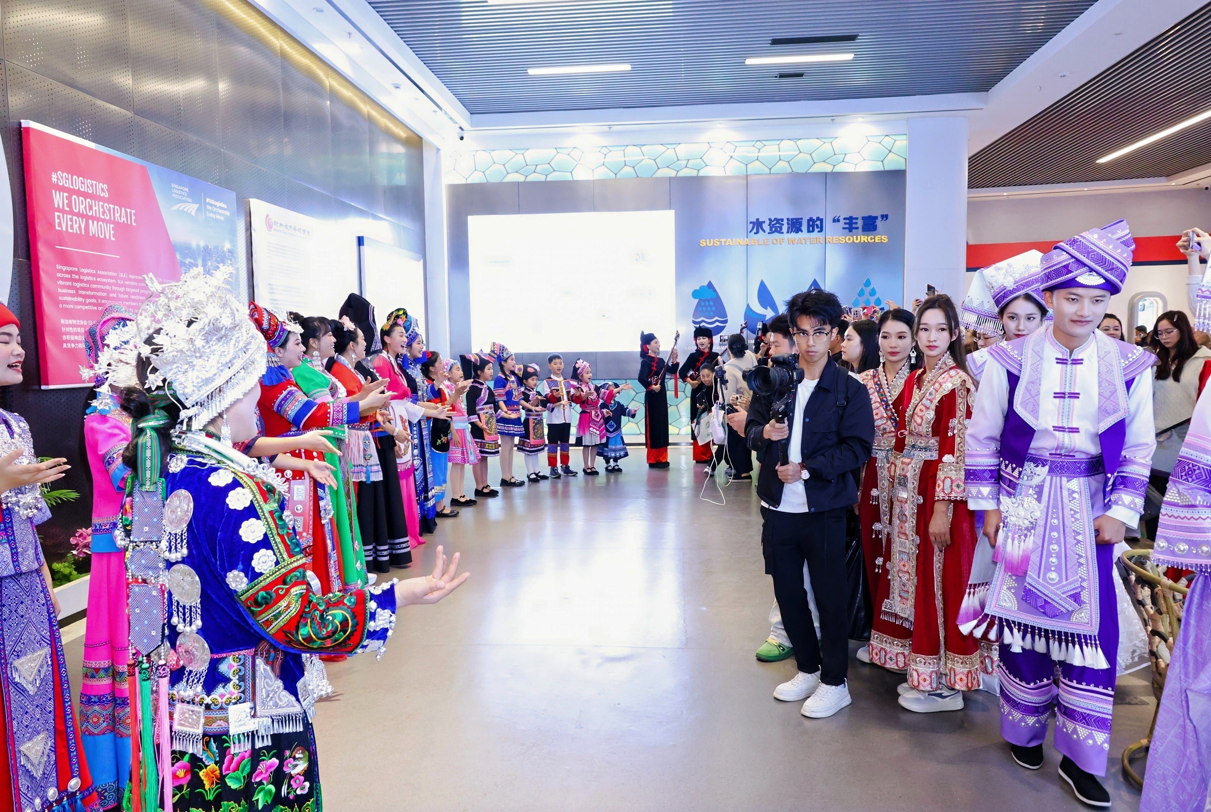 活動(dòng)中,沉浸式參觀匯聚中心各文化主題展館的環(huán)節(jié)成為亮點(diǎn)。演員們身著代表新加坡及廣西各式民族服飾,在新加坡展館輪番演繹經(jīng)典片段。婉轉(zhuǎn)的唱腔、細(xì)膩的表演,與展館中融貫的文化元素交相輝映,不僅營(yíng)造出一場(chǎng)視聽交融的盛宴,更生動(dòng)詮釋了匯聚中心“以文化匯商家,以商貿(mào)聚合作”的理念。現(xiàn)場(chǎng)嘉賓或駐足聆聽,或交流感悟,或舉起手機(jī)記錄動(dòng)人瞬間,在多元文化的交融中,近距離感受商貿(mào)往來與文化交融共生的獨(dú)特魅力。