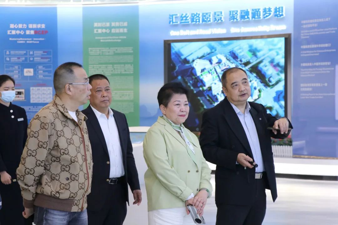 廣西壯族自治區(qū)黨委統(tǒng)戰(zhàn)部一級(jí)調(diào)研員、廣西僑商會(huì)常務(wù)副會(huì)長(zhǎng)楊真標(biāo),廣西僑商會(huì)常務(wù)副會(huì)長(zhǎng)、輪值會(huì)長(zhǎng)、廣西桂林萬靈置業(yè)投資有限公司執(zhí)行董事黃江玲,廣西僑商會(huì)常務(wù)副會(huì)長(zhǎng)、廣西粵玖實(shí)業(yè)有限公司董事長(zhǎng)鄺升,廣西僑商會(huì)監(jiān)事長(zhǎng)、廣西方凱酒店管理有限責(zé)任公司董事長(zhǎng)黃少紅,廣西僑商會(huì)秘書長(zhǎng)蔣文釗,怡海集團(tuán)辦公室主任薛淑良,怡海集團(tuán)投資部經(jīng)理崔宇赟,中國(guó)—東盟特色商品匯聚中心副總經(jīng)理盧春梅等陪同考察。